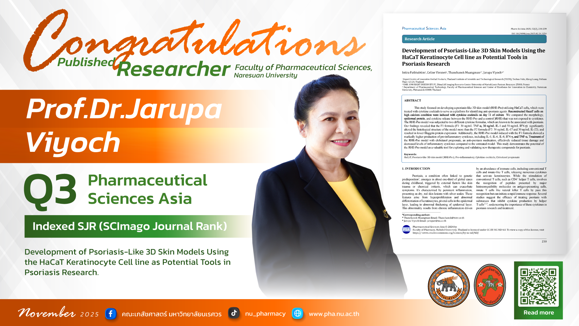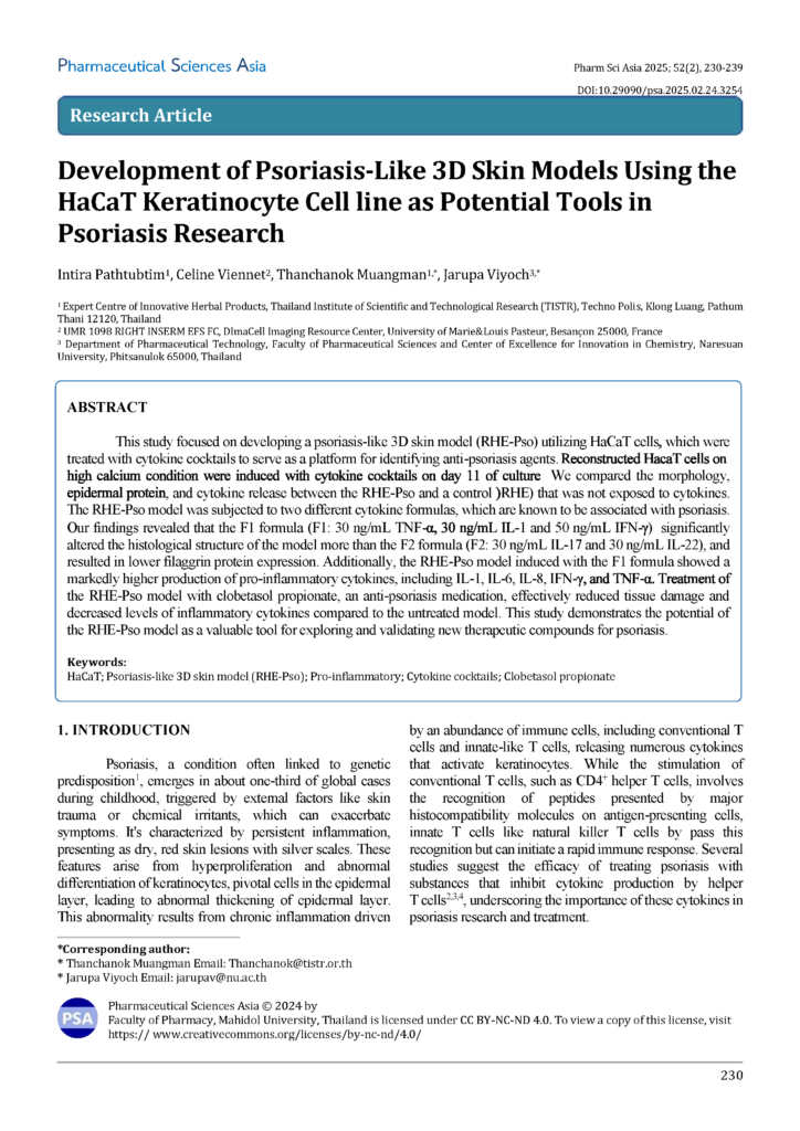 Research Title: Development of Psoriasis-Like 3D Skin Models Using the HaCaT Keratinocyte Cell line as Potential Tools in Psoriasis Research.